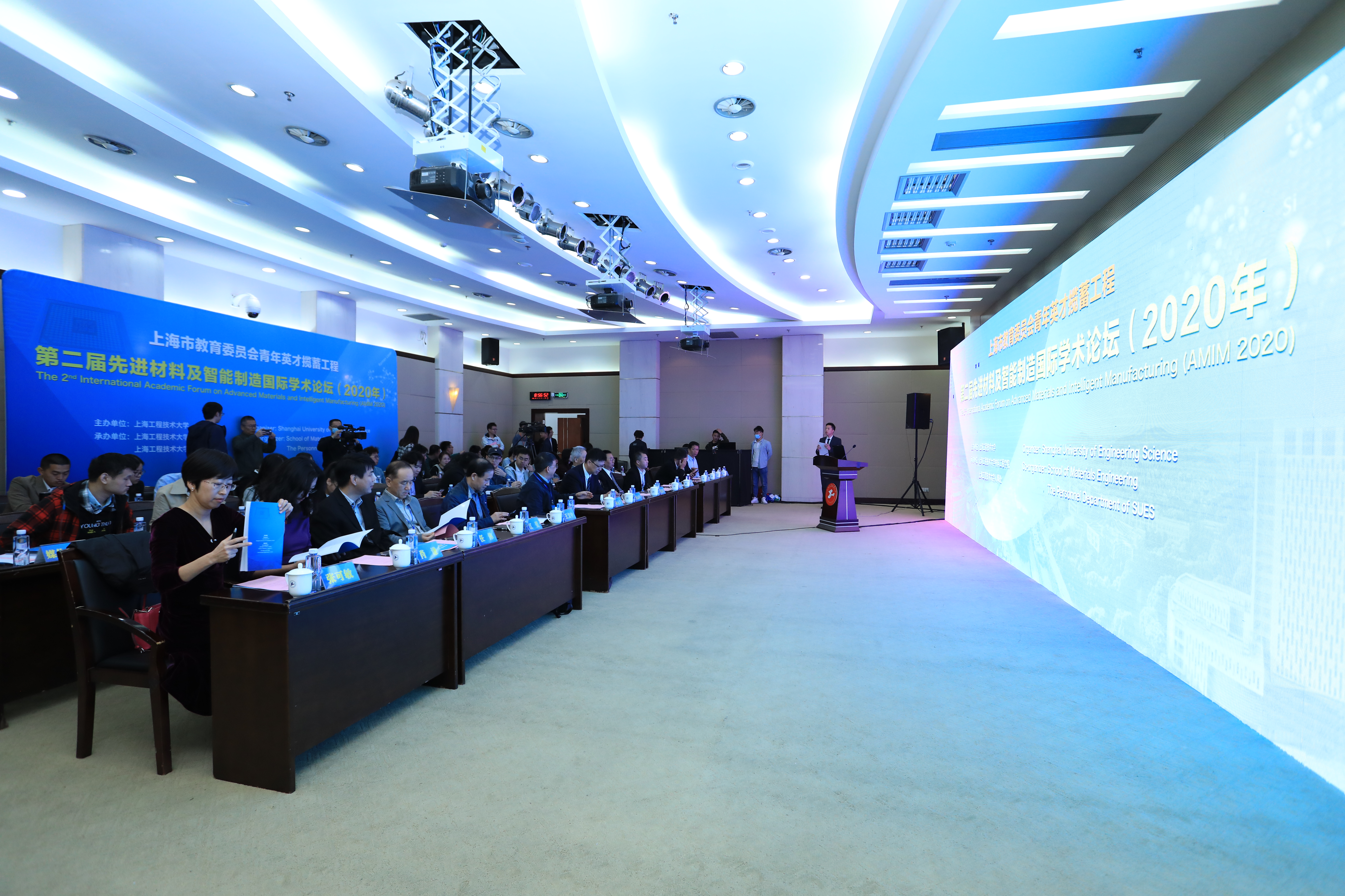 10月17-18日,依托上海市教育委员会青年英才揽蓄工程,由437ccm·必赢国际主办,437ccm·必赢国际材料工程学院和437ccm·必赢国际人事处共同承办,第二届先进材料及智能制造国际学术论坛(The 2nd International Academic Forum on Advanced Materials and Intelligent Manufacturing,AMIM2020)在我校松江校区举行。由于疫情原因,论坛采用线上和线下结合的方式,线下现场报告在我校松江校区图文信息中心第三报告厅进行,线上报告则利用腾讯会议平台进行同步直播。来自法国、美国、英国、葡萄牙、瑞士、新加坡、伊朗、韩国以及中国的专家学者共聚一堂,就先进材料及智能制造领域(机械、电气、化工等)内热点问题进行了热烈的讨论交流。