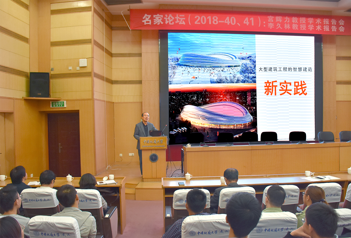 李久林以《智慧建造——从北京夏奥到冬奥的发展与实践》为题,从建筑产业环境发展的新常态、建筑工程智慧建造的新理论和大型工程智慧建造的新实践3个方面展开报告。他结合多年的工程实践和科研心得,回顾了“鸟巢“、昆明新机场、北京英特宜家工程、槐房再生水厂和北京新机场等重大项目建造中的BIM及信息化技术应用,系统阐述了智慧建造的发展历程和实践经验,展望了智慧建造的发展方向,并与师生就创新型人才培养模式等问题展开讨论。