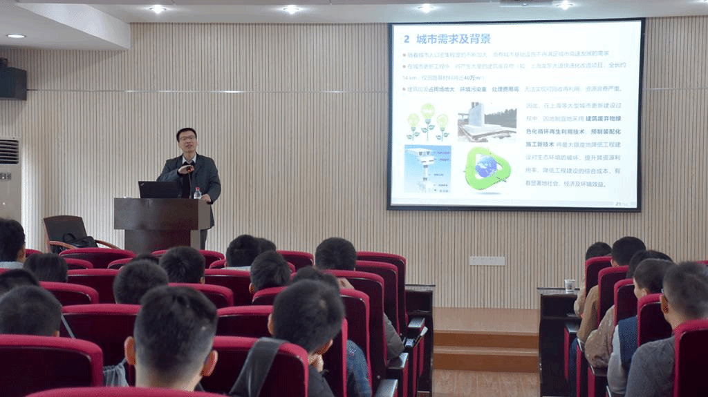报告围绕“城市更新中绿色施工技术探索与实践”展开,介绍了上海建工集团工程研究总院在复杂的城市环境中绿色施工技术的探索和工程实践经验,分别从“高架桥梁预制拼装技术”、“地下结构预制拼装技术”和“渣土再生利用技术”三个方面介绍了绿色施工技术中的关键技术问题和积累的工程经验。报告结束后,吴小建所长热情回答了参会师生的提问,他衷心希望MILE米乐官网师生在城市绿色施工技术上取得更大的突破,为解决我国城市施工中的环境难题做出贡献。