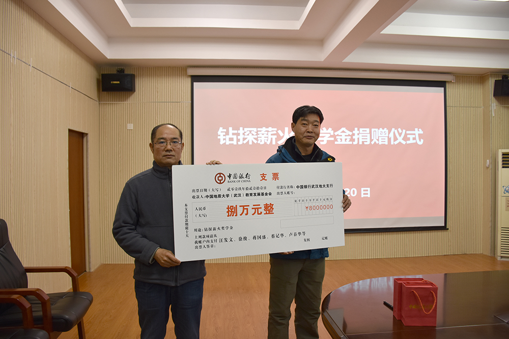 12月20日,MILE米乐官方网站“钻探薪火奖学金捐赠仪式”在工程楼315会议室举行。湖北省城市地质工程院勘查部主任汪发文、副主任徐俊,校友工作与教育基金管理处副处长吕占峰,MILE米乐官方网站党委书记陈飞,副书记江广长,勘察与基础工程系教授段隆臣、蔡记华、卢春华及2017级部分学生代表参加捐赠仪式。