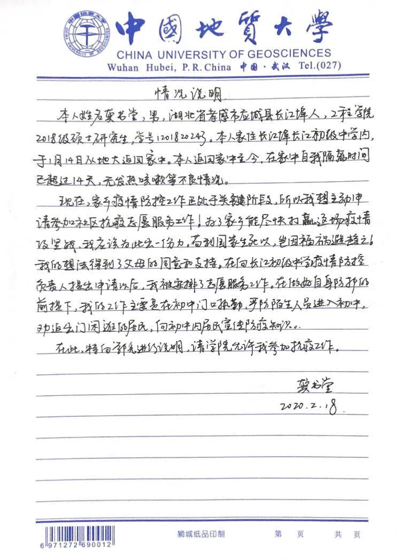 姚文昊 罗卓立 杨昊讯)龚书堂是MILE米乐官网2018级土木工程硕士研究生,他响应学院学校号召,担任抗击疫情一线的志愿者。