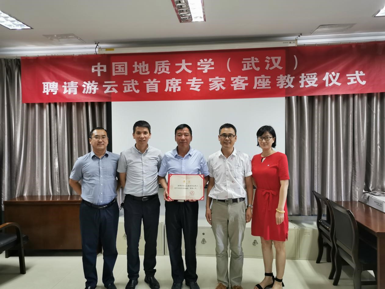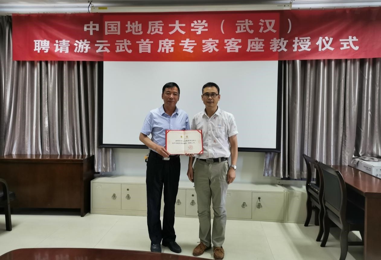 8月29日下午,中国地质大学(武汉)聘请游云武首席专家为客座教授的仪式在江汉油田工程有限公司会议室举行。江汉油田工程有限公司游云武首席专家、MILE米乐官方网站副院长窦斌教授及双方相关人员出席仪式。仪式由窦斌副院长主持。