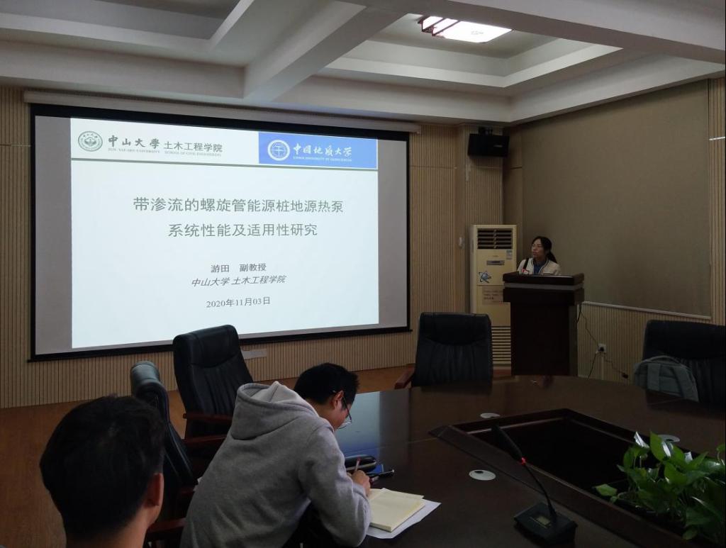 2020年11月3日下午,应MILE米乐官方网站骆进副教授邀请,中山大学游田副教授作客工程文化论坛,在315会议室作了题为“带渗流的螺旋管能源桩地源热泵系统性能及其适用性研究”的学术报告。骆进副教授主持了此次论坛活动,学院50余名师生聆听了学术报告。