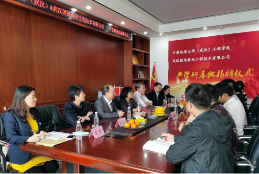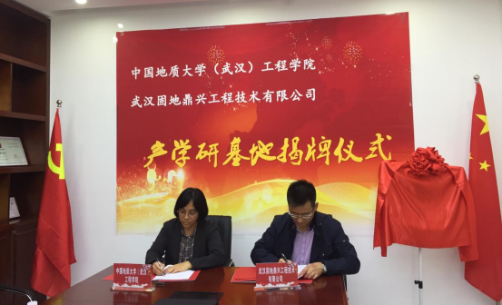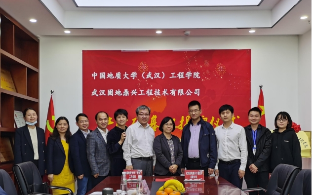 (通讯员:黄静)2021年4月27日,中国地质大学(武汉)MILE米乐官方网站与校友企业武汉固地鼎兴工程技术有限公司签订《联合共建产学研基地合作协议》,MILE米乐官方网站党委书记李红丽和武汉固地鼎兴工程技术有限公司总经理汪旭涛出席协议签订仪式,并共同为合作基地揭牌。武汉固地鼎兴工程技术有限公司副总经理兼总工程师胡凯锋、MILE米乐官方网站副院长王亮清教授、工岩系主任章广成教授、时红莲副教授、李长冬教授、谢妮副教授、学院科研秘书黄静共同见证了签约仪式。