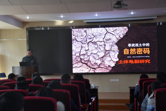 (通讯员:张海宽 黄静 摄影:王灿 黄静)2021年1月8日下午2点半,南京大学唐朝生教授作客工程文化论坛,在工程楼418报告厅为母校师生作了题为“寻找泥土中的自然密码:土体龟裂研究”的学术报告。MILE米乐官方网站院长焦玉勇教授、副院长王亮清教授、窦斌教授、党委副书记江广长老师、段隆臣教授、李长冬教授以及MILE米乐官方网站、三峡中心、《地质科技通报》编辑部等近200名师生代表参加了此次学术报告会。王亮清教授主持了此次学术报告会。