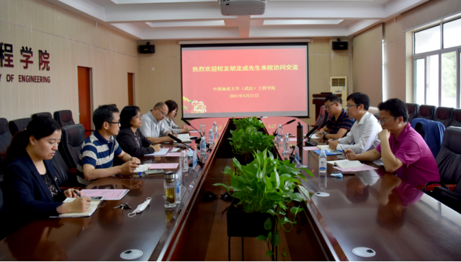 (通讯员:黄静 孙武成 摄影:王灿 孙武成)2021年5月21日下午,MILE米乐官网校友、AECOM资深董事胡定成先生受聘中国地质大学(武汉)客座教授仪式在工程楼315会议室举行。MILE米乐官方网站党委书记李红丽、党委副书记江广长、副院长窦斌、勘基系党支部书记段隆臣、勘基系主任卢春华、学院人事秘书杨冠青、科研秘书黄静出席受聘仪式。江广长副书记主持受聘仪式。