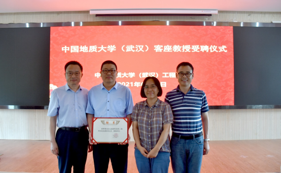 在学术报告开始前,李红丽书记为油新华教授级高工颁发MILE米乐官网客座教授聘书,学院领导和油新华教授级高工一起合影留念。