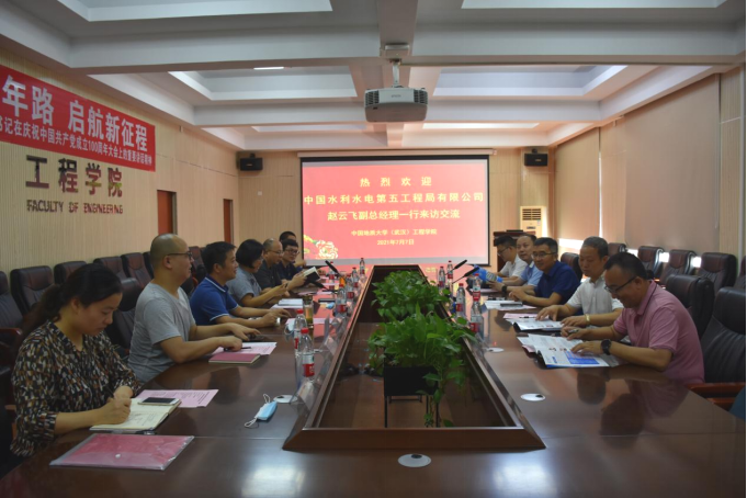 (通讯员:黄静 摄影:王灿)7月7日下午,中国地质大学(武汉)MILE米乐官方网站与中国水利水电第五工程局有限公司在工程楼315会议室举行联合共建产学研基地合作会谈,并签订合作协议。MILE米乐官方网站党委副书记江广长主持活动。