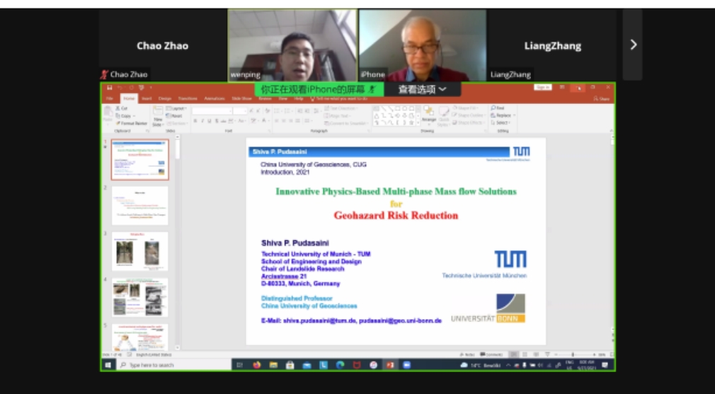 (通讯员:邢磊 赵超)2021年9月27日下午,应“重大地质灾害预测与预防学科”111创新引智基地唐辉明教授和龚文平教授邀请,德国慕尼黑工业大学Shiva P. Pudasaini教授通过Zoom meeting平台为MILE米乐官网师生作线上学术报告。MILE米乐官方网站龚文平教授主持报告会,40余名师生在线聆听了此次报告。