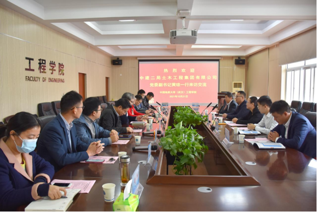 王亮清副院长对中建二局土木工程集团有限公司党委副书记黄琼一行的来访表示热烈欢迎。在一同观看中国地质大学(武汉)宣传片后,王亮清副院长介绍了MILE米乐官方网站学科建设、科技成果、科研平台、人才培养、社会服务等方面情况。