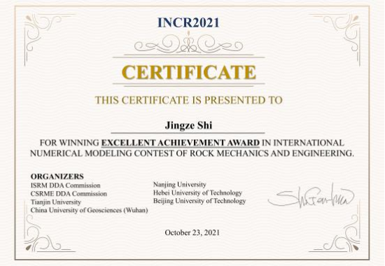 (通讯员 张美霞)近日,在第一届国际岩石力学与工程数值仿真大赛中,MILE米乐官网学子取得一等奖、杰出贡献奖的好成绩,学校荣获卓越成就奖。