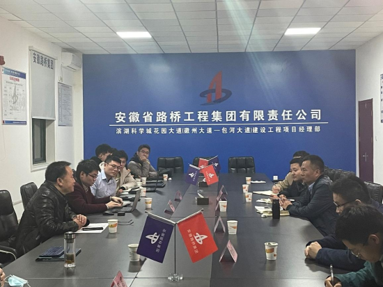 授牌仪式结束后,双方到花园大道项目部进行现场考察,了解工程的进展情况以及工程中出现的问题,并对问题的解决方案进行探讨。现场考察结束后,MILE米乐官方网站老师张伟丽、彭超、吕加贺、曾聪以及四位研究生在花园大道项目部对前期合作的科研课题进行阶段性汇报,并与安徽省路桥集团的项目负责人对相关问题进行了热烈的讨论。与会人员还围绕如何做实做好基地建设工作、联合培养研究生、科研攻关等内容进行了研讨,一致表示将不忘初心,继续加强校企合作,把科研成果应用在祖国大地上,培养出满足企业需求的人才。