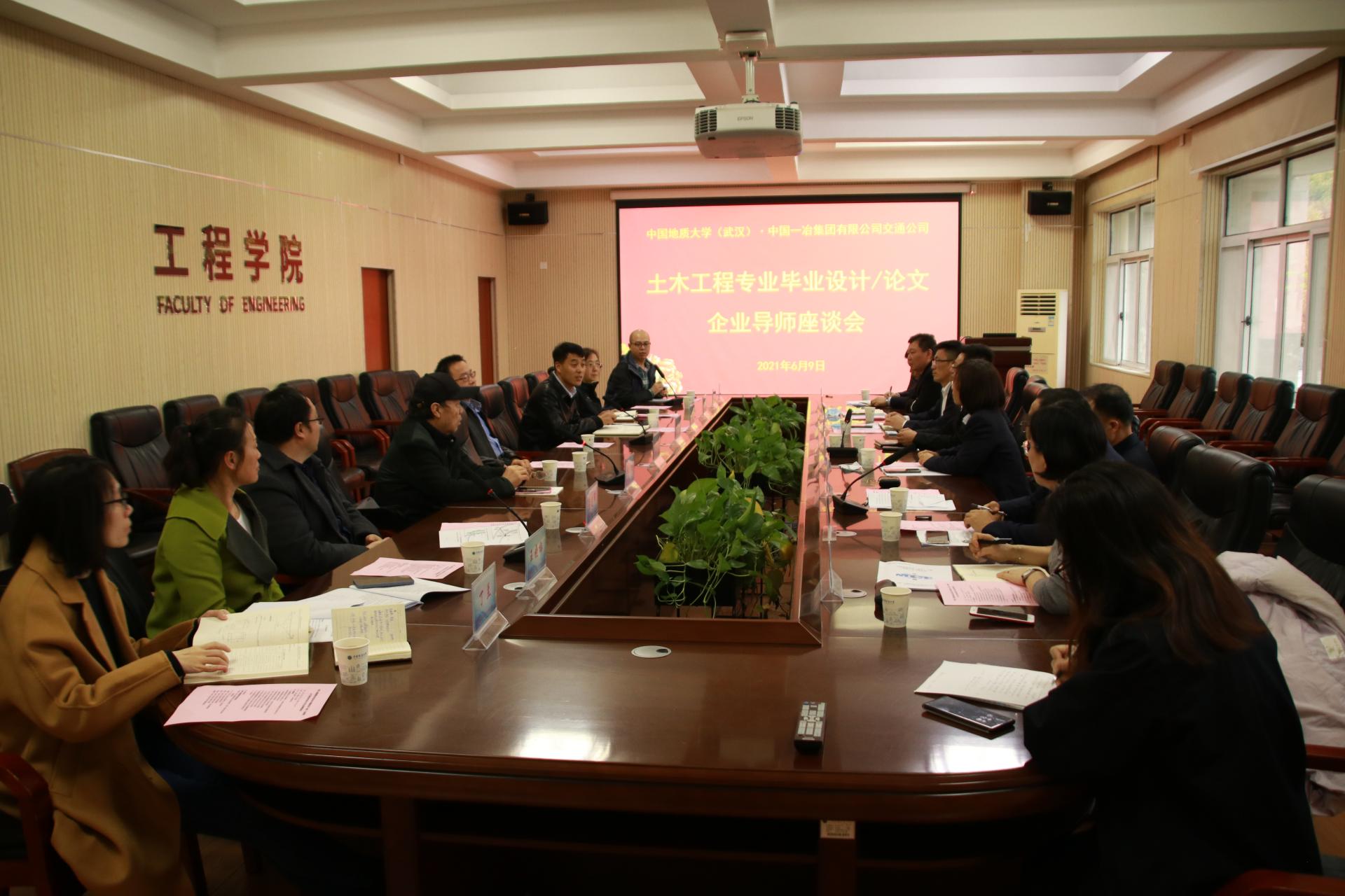 (通讯员 李雪平)2022年3月17日下午,由中国一冶集团有限公司总经理助理、一冶集团交通公司总经理、党委副书记、MILE米乐官网97届校友焦玉俊和一冶集团交通公司党委书记、副总经理徐诉率队,一行7人组成的专家团队,参加了MILE米乐官方网站举行的“中国一冶集团有限公司交通公司—中国地质大学(武汉)MILE米乐官方网站土木工程专业毕业设计/论文企业导师座谈会”。院长焦玉勇、党委副书记高晓东、学校教学督导员姚爱国以及土木工程与力学系、地下空间工程系教师代表和学生代表共12人参加了此次会议。会议由高晓东副书记主持。