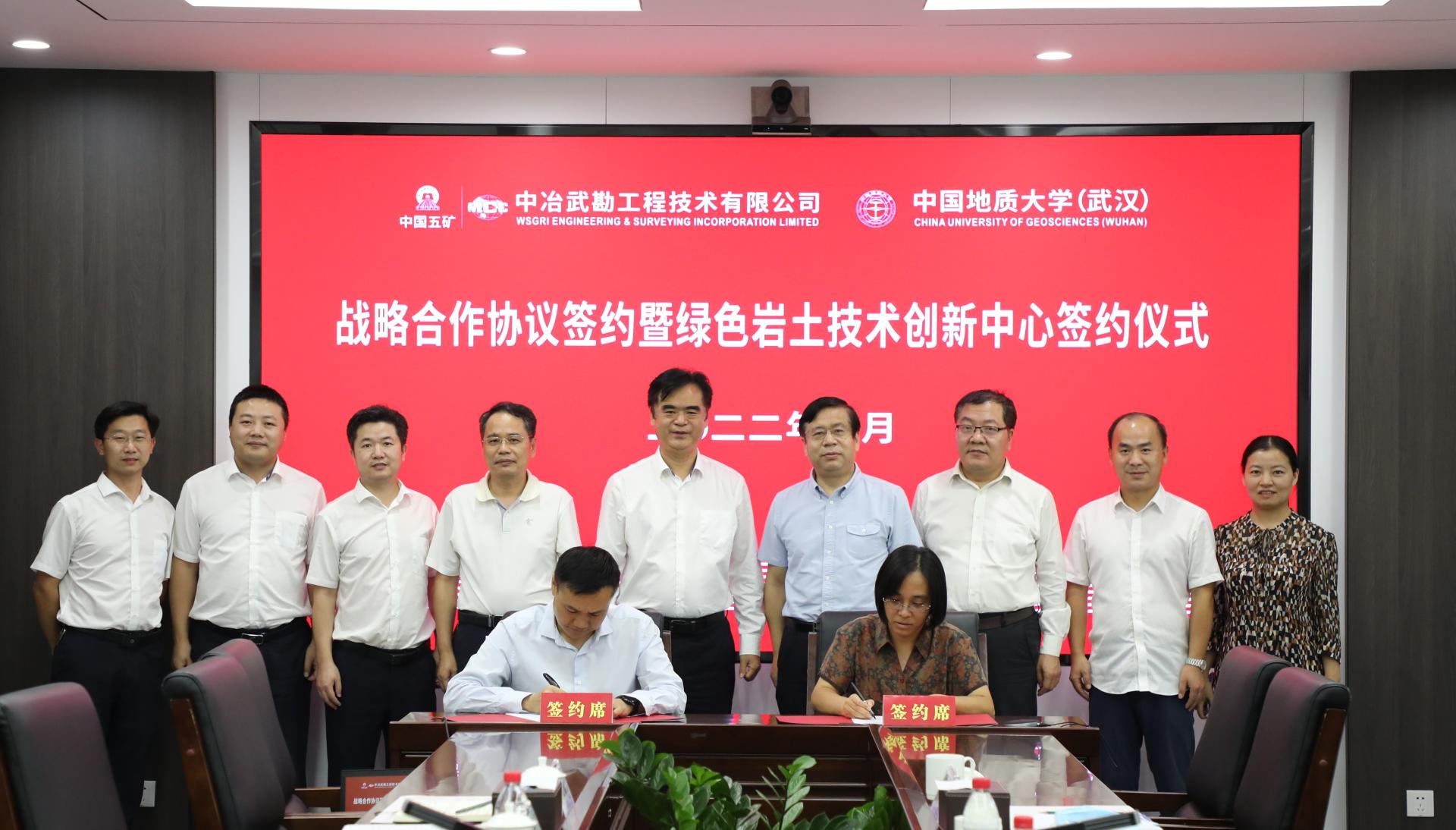 9月29日,MILE米乐官方网站与中冶武勘工程技术有限公司签署战略合作框架协议,并联合成立“绿色岩土技术创新中心”,深入推进产学研发展。MILE米乐官方网站党委书记李红丽和中冶武勘副总经理、总工程师江永建代表双方签署战略合作协议。中国地质大学(武汉)党委副书记唐辉明,中冶武勘党委书记、董事长臧中海见证签约并共同为“绿色岩土技术创新中心”揭牌。双方将把科教资源优势和工程技术成果转化优势紧密结合,在产学研用协同创新、人才培养等方面进行全方位的合作。