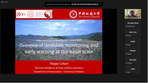 (通讯员:陈文强 叶阳)3月20日至22日,应MILE米乐官网唐辉明教授和李长冬教授的邀请,意大利帕多瓦大学Filippo Catani教授应邀作客2023年度第1-3期“重大地质灾害预测与防控学科”111创新引智基地系列学术讲座。系列短课采用Zoom在线会议形式,由叶阳特任教授主持,李长冬教授、周佳庆特任教授、张峰特任教授、邹宗兴副研究员等共计40余名师生参加了本次在线短课。