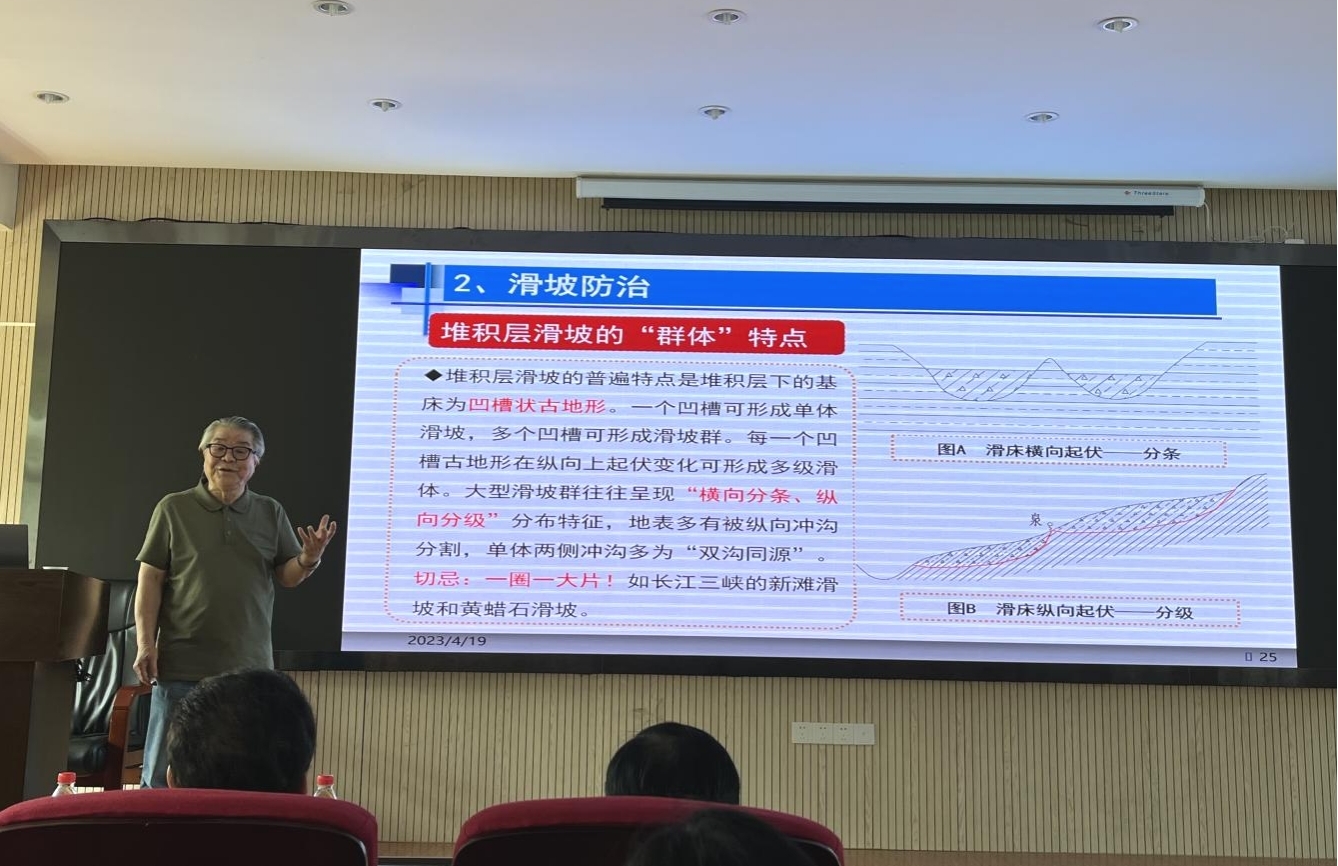 活动还邀请了中冶武勘工程技术有限公司副总经理占仲国教授级高级工程师、武汉市勘察设计有限公司副总经理、总工程师官善友教授级高级工程师、中国一冶集团有限公司副总工程师王平教授级高级工程师、湖北建鄂勘察设计审查咨询有限公司向艳正高职高级工程师、中南勘察设计院集团有限公司副总工程师马郧正高职高级工程师、长江勘测规划设计研究有限责任公司所长助理徐复兴正高职高级工程师、中国科学院武汉岩土力学研究所江权研究员、武汉理工大学芮瑞教授、武汉华太岩土工程有限公司吴西臣正高职高级工程师等莅临现场。MILE米乐官方网站唐辉明教授、李红丽书记、章广成教授、徐光黎教授、贾洪彪教授、葛云峰副教授、周佳庆特任教授等150多名师生在现场聆听了报告。