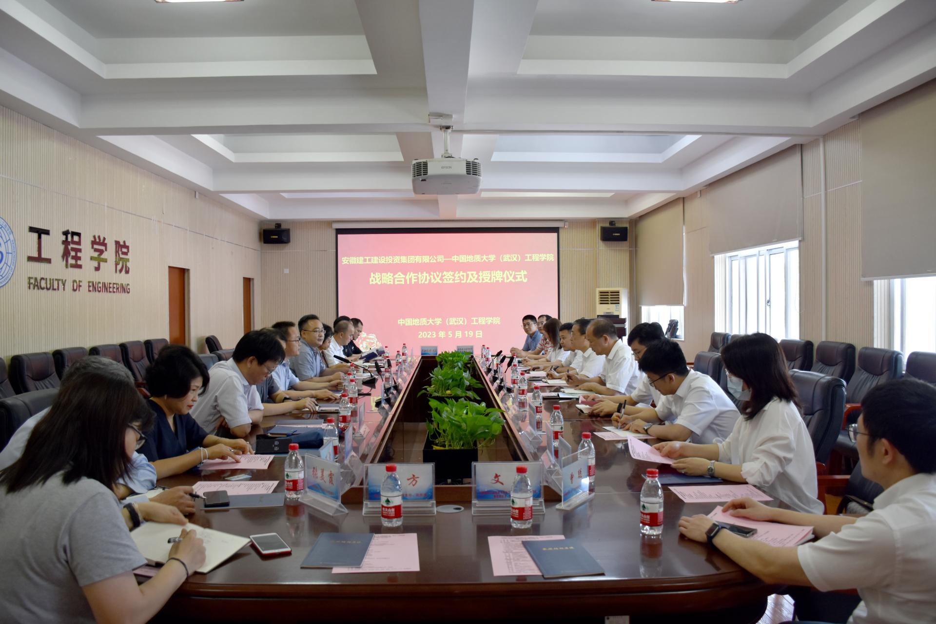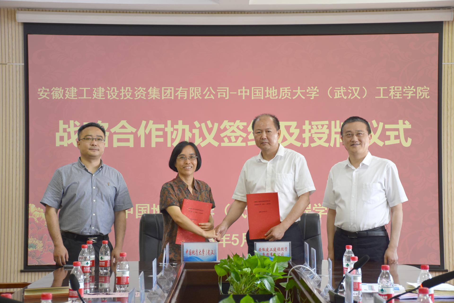 (通讯员 张美霞 王灿 冯焱 )5月19日,MILE米乐官网与安徽建工建设投资集团有限公司(以下简称:建设投资集团)签署战略合作协议。建设投资集团副书记干戈,党委委员、副总经理、总工程师陈莘,MILE米乐官网党委常委、副校长王力哲,校友与社会合作处副处长、深圳研究院副院长王强,我院党委书记李红丽,党委副书记、院长焦玉勇,副院长章广成及双方相关人员参加合作座谈会和签约仪式。李红丽主持会议。