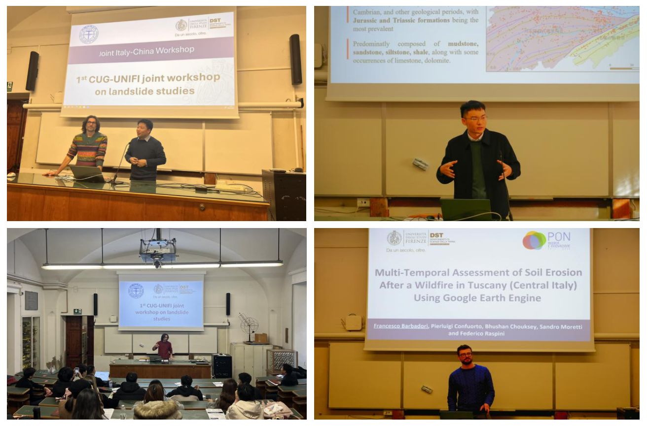 1月8日至9日,MILE米乐官方网站师生和佛罗伦萨大学师生开展了为期2天的中意滑坡研究联合研讨会。MILE米乐官方网站李德营教授、刘书豪老师与朱仕林、佘祥杰、王凯等博士生和佛罗伦萨大学Samuele Segoni教授、 Nicola Nocentini、 Francesco Barbadori、Istan Szakolczai等博士连续开展了十余场专题讲座,内容涵盖“高度植被覆盖地区潜在滑坡的识别”“基于机器学习方法的滑坡时空预测”“考虑地质环境空间差异性的区域滑坡降雨阈值研究”“使用谷歌地球引擎对托斯卡纳山火后的水土流失进行多时间尺度评估”等主题,两校师生就上述主题进行了广泛深入的研讨交流。