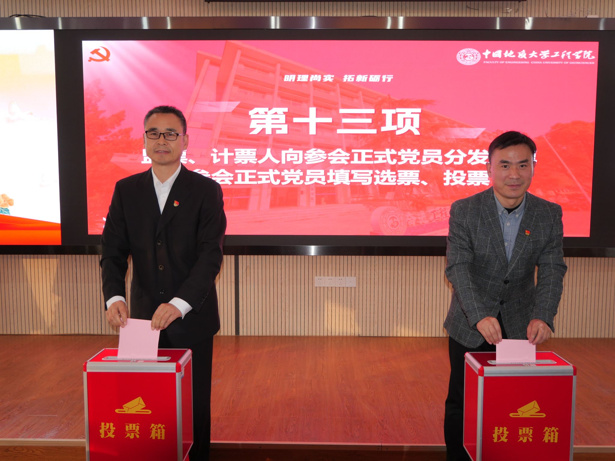 报告指出,学院党委在学校党委的坚强领导下,坚持以习近平新时代中国特色社会主义思想为指导,坚决贯彻落实学校党委决策部署,不忘初心、牢记使命,深入推进党建工作与业务工作深度融合,在全体党员和全院师生的共同努力下,圆满完成第四次党员大会确定的主要任务,学院各项事业取得新进展。一是抓党建强基础,党的领导全面加强。学院党委政治核心作用持续增强。2023年学院党委获批学校党建工作“标杆分党委”培育创建单位。师生政治理论武装持续深入。学院各党支部严格落实政治理论学习要求,通过校企、师生、党团联学联建、实践研学等活动丰富学习形式,增强学习效果。师生党支部建设成效显著。3个师生党支部入选学校党建工作“样板支部”培育创建单位,19个师生党支部获评学校先进基层党组织。师生党员发展工作卓有成效。严格党员发展程序,六年发展师生党员1071名、转正师生党员939名。党风廉政建设常抓不懈。落实全面从严治党“四责协同”相关要求,构建“一级抓一级,层层抓落实”的党风廉政建设责任体系。统战、群团工作不断加强。鼓励党外知识分子发挥优势建言咨政、服务社会,共绘事业发展同心圆。二是抓重点强落实,学院综合实力持续增强。人才培养质量稳步提高。深化“三全育人”“五育并举”,深化教育教学改革,持续提升本科生和研究生教育教学质量。师资队伍建设成效明显。六年来,学院新增国家杰出青年基金获得者等国家级人才3人、国家级青年人才项目获得者10人、湖北省人才项目获得者10人。学科平台和实验室建设持续推进。地质工程成功入选第二轮“双一流”建设学科名单,完成“十四五”实验室建设发展规划,建设四横三纵高标准实验室建设体系。科学研究和社会服务再上新台阶。2019年以来学院到账科研经费5.3亿元,其中纵向经费2.2亿元,横向经费3.1亿元。与行业单位签订产学研合作协议65家。国际合作与影响力持续提升。主办、承办各类国际学术会议15场,邀请163人次国(境)外专家来学院线上线下讲学交流。学院文化建设初见成效。学院党委进行了全面总结和系统凝练,形成了独具“工程特色”的学院标识文化体系。