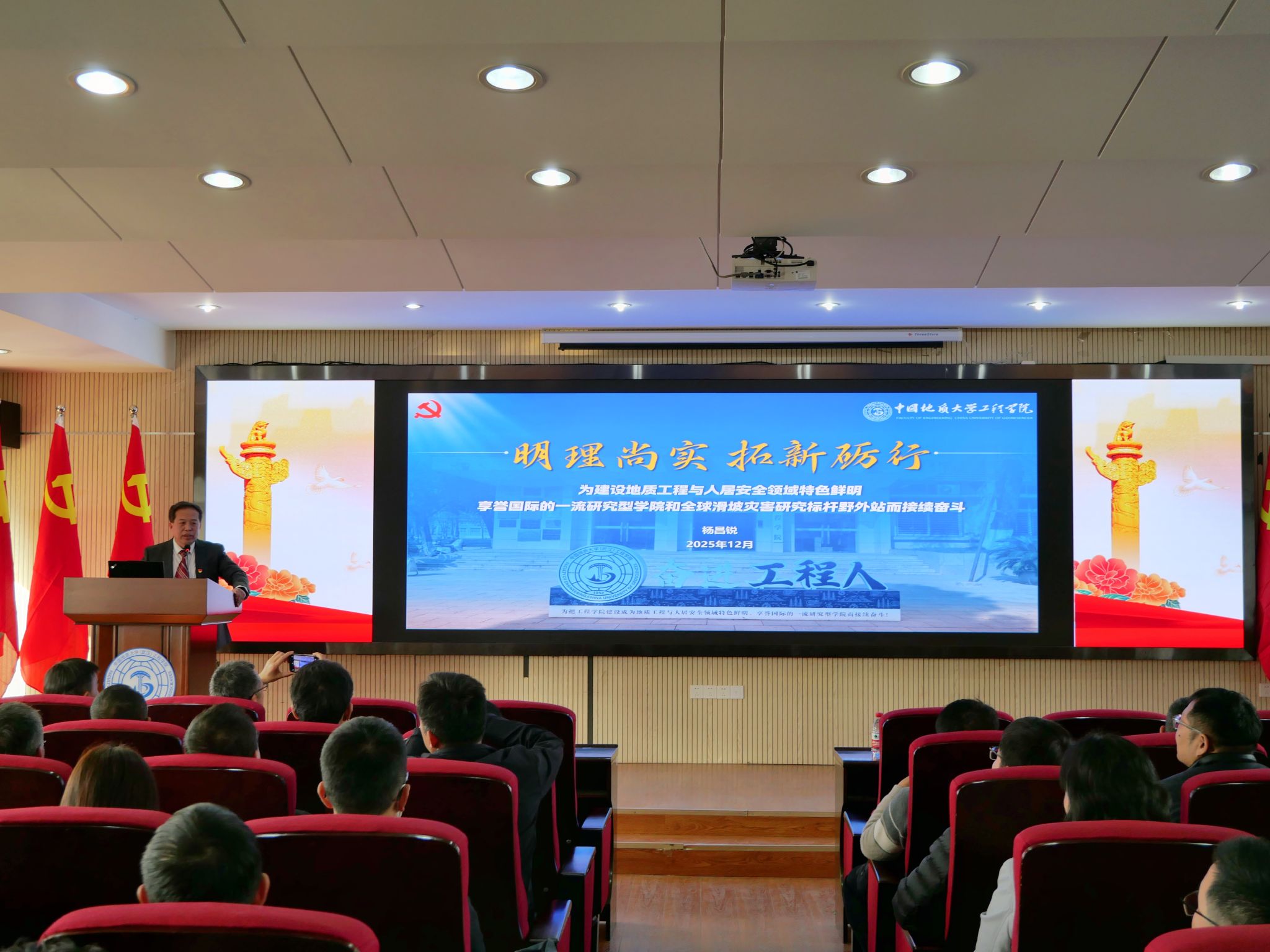 2025年12月11日,学院召开中共中国地质大学(武汉)MILE米乐官方网站委员会第五次党员大会,党委书记杨昌锐同志代表第四届党委会作题为《明理尚实 拓新砺行 为建设地质工程与人居安全领域特色鲜明、享誉国际的一流研究型学院和全球滑坡灾害研究标杆野外站而接续奋斗》工作报告