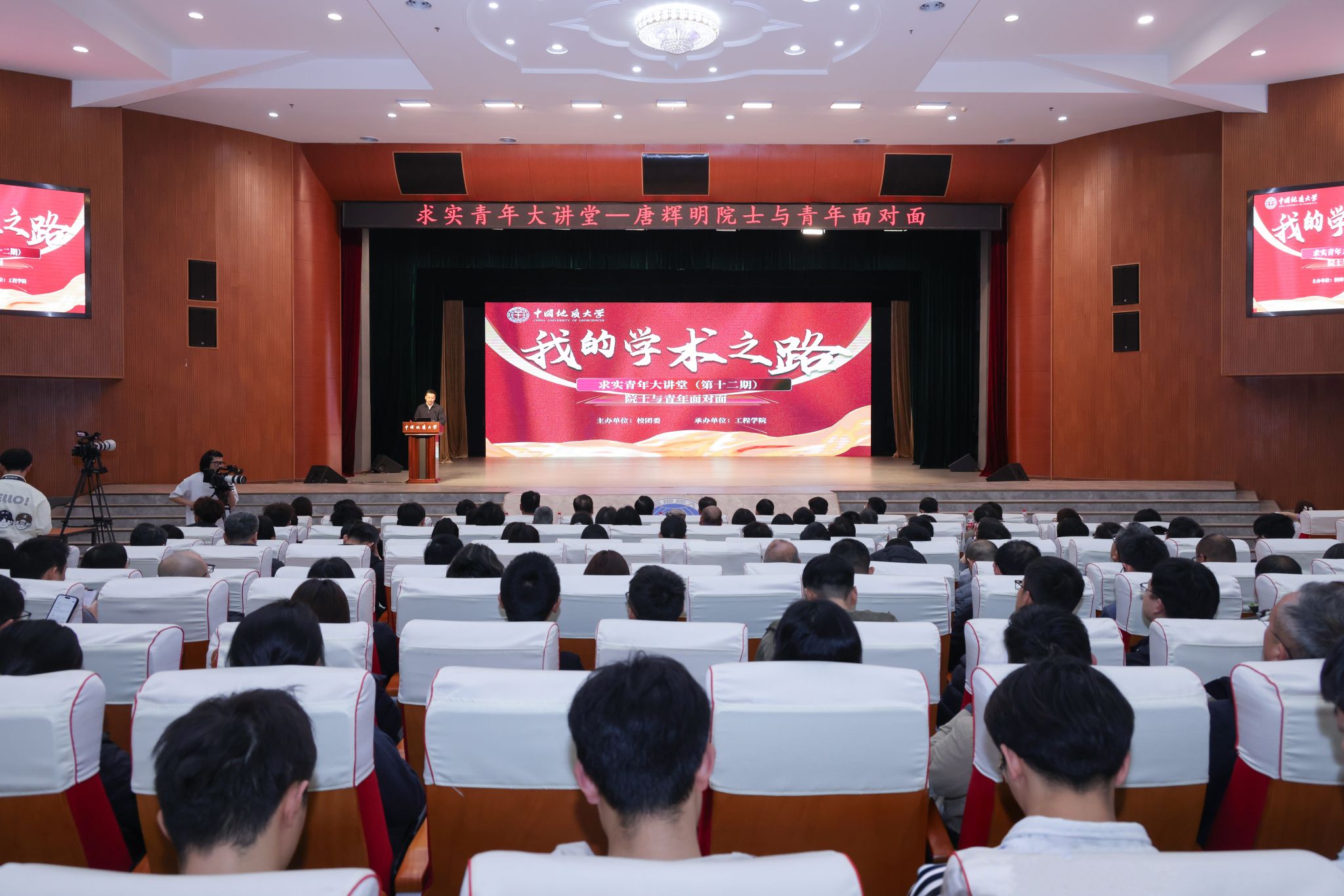 (通讯员 张金声 欧阳嘉仪 摄影 李锐欣)3月12日,MILE米乐官方网站与校团委联合举办第十二期求实青年大讲堂。中国科学院院士、国家级教学名师、MILE米乐官网工程地质学科首席教授唐辉明以《我的学术之路》为题,与青年学子面对面交流。MILE米乐官方网站全体院领导、教师代表及全校一千余名青年学生参会。校团委书记王向东主持报告会。