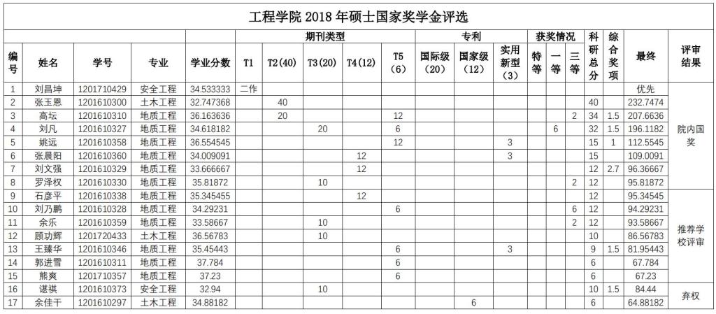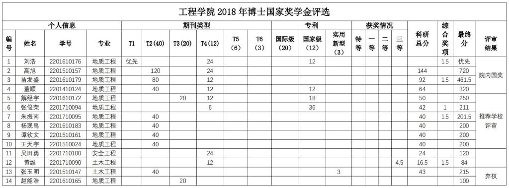 经个人申报,学院研究生国家奖学金评审委员会秘书处资格审查,学院研究生国家奖学金评审委员会于2018年9月29日下午组织通过资格审查的申报者(其中博士研究生14人,硕士研究生17人)进行答辩评审,学院研究生国家奖学金监审委员会全程监督。会议确定了刘昌坤等8名硕士研究生,刘浩等4名博士研究生为MILE米乐官方网站2018 年研究生国奖学金候选人。现将MILE米乐官方网站 2018 年国家奖学金候选人公示(见下表)。