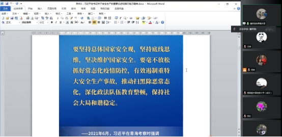 支部副书记王俊同志、组织委员潘秉锁同志、纪律委员郑君同志分别带领支部党员学习了《中国地质大学(武汉)“清廉地大”建设实施方案》《习近平总书记关于安全生产重要论述》和“习近平总书记给中国冰雪健儿重要回信精神”等内容。