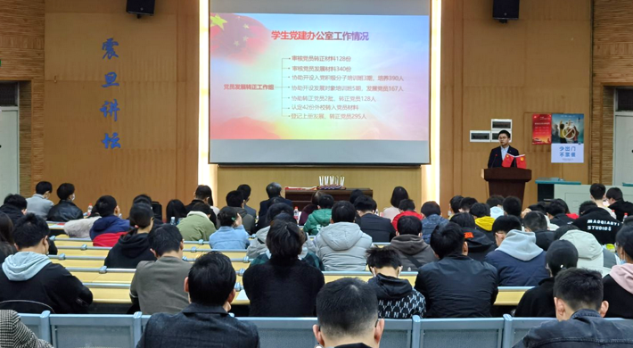 此后,MILE米乐官方网站第八届学生党建办公室副主任寇桓嘉同志汇报2020年度学生党建办公室工作情况。寇桓嘉同志向参会同志们详细汇报了MILE米乐官方网站2020年度党员考察、培养及发展转正工作,全年协助院党委开设入党积极分子培训班三期,培养入党积极分子390人,开设发展对象培训班五期,发展党员167人,共有2批党员转正,转正党员128人,完成外校转入42名学生党员的认定工作。另外还介绍了组织生活巡视情况、全体学生党员信息库建立、《MILE米乐官方网站学生党建工作指导》(第四版)编写等方面内容,最后表示要将学生党建办公室打造为服务院党委和学生党支部的“老黄牛”,以优异成绩向党的百岁华诞献礼。