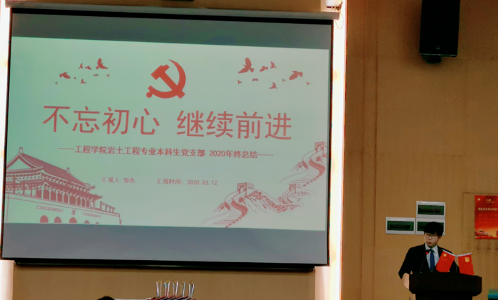 首先各党支部书记做2020年度学生党支部工作总结汇报。报告内容大致从支部建设、党员教育发展、特色活动、不足和展望四个方面进行陈述。在支部建设中,支部书记鼓励支部成员讲党课,积极开展支部组织生活会,并进行党员批评与自我批评等。在党员教育发展中,严谨认真。在疫情形势下,通过线上微党课、学习强国、青年大学习等手段开展党员教育,贯彻落实“以党建带动团建,班团一体化建设”,让支部成员更好将党建任务落实,并常与支部成员谈话谈心以了解他们的情况等。在各党支部的特色工作中,出现了一些新颖的活动:“冬天的第一本书”,参观“人民至上,生命至上”主题抗疫展览,学习不惧困难、团结一致的精神,开展个人演讲等。最后,各党支部提出了现有的不足与在2021年里的改进措施。