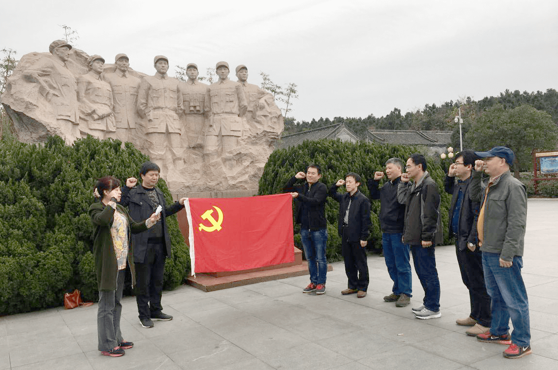 图6 支部党员在革命烈士石雕前重温入党誓词