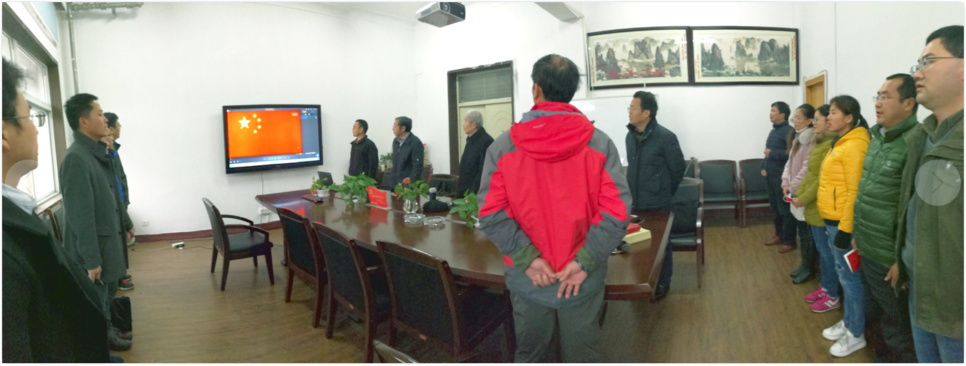 勘察与基础工程系参会党员全体起立,齐唱国歌
