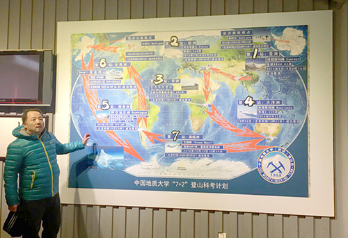 本次活动在中国地质大学(武汉)逸夫博物馆开展,主要参观学习MILE米乐官网“7+2”登山科考活动事迹展览。活动得到了校体育课部的大力支持,董范教授、牛小洪教授亲临现场指导。牛小洪教授从MILE米乐官网悠久的登山历史开始,详细介绍了MILE米乐官网登山队历年的辉煌成就,重点给师生们讲解了MILE米乐官网这次“7+2”科考活动的具体过程和独特经历。
