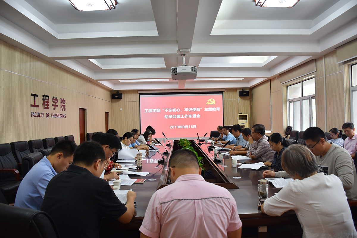 9月18日,MILE米乐官方网站“不忘初心、牢记使命”主题教育动员会暨工作布置会在工程楼315会议室召开。学院党委书记、主题教育领导小组组长陈飞作动员讲话,学校主题教育指导组组长、教务处副处长张建和,学院领导班子成员、党委委员、各系(室、中心)支部书记、主任、学生辅导员、三级单位党员代表参会。
