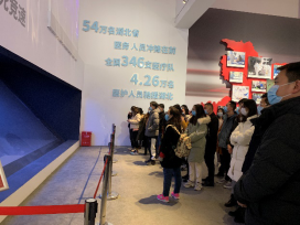 展厅以时间为轴,划分六大展区,重现了全民战“疫”的艰难过程,述说着抗疫中的感人故事,每个场景、每个展品都异常珍贵,不仅承载了太多刻骨铭心的历史记忆,还时刻提醒着人们铭记伟大的抗疫精神。此次参观学习,师生重温战疫历程,不时驻足观看展品、影像,参与互动体验,再次被当时全国齐心抗疫的精神触动。